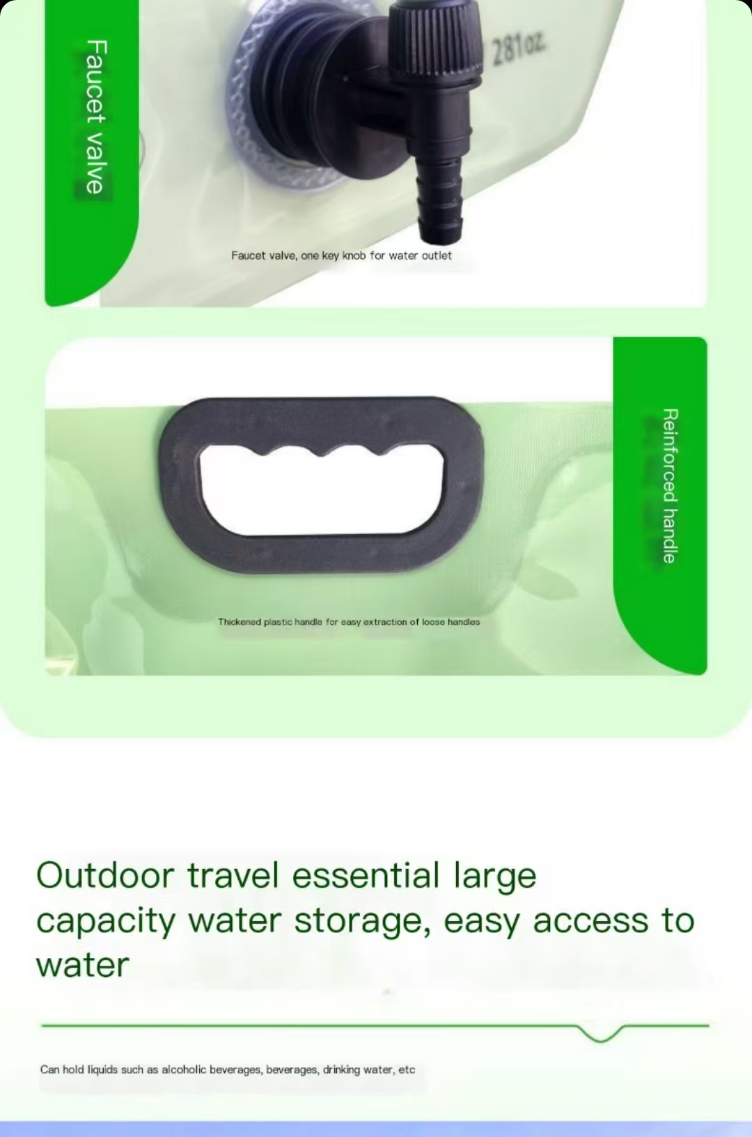 Essential outdoor travel water storage bag, portable outdoor water bag, 8-liter large capacity bag with faucet valve