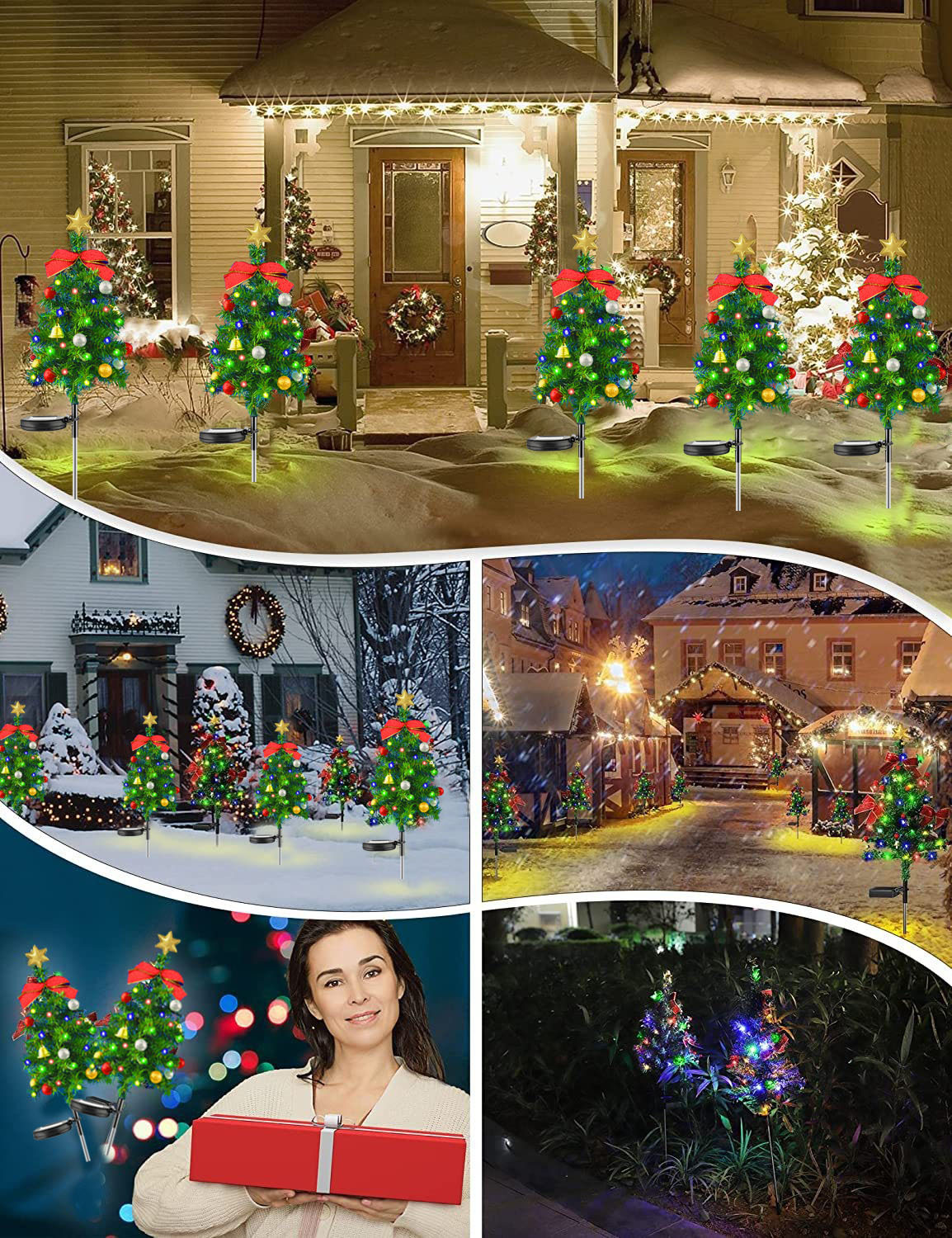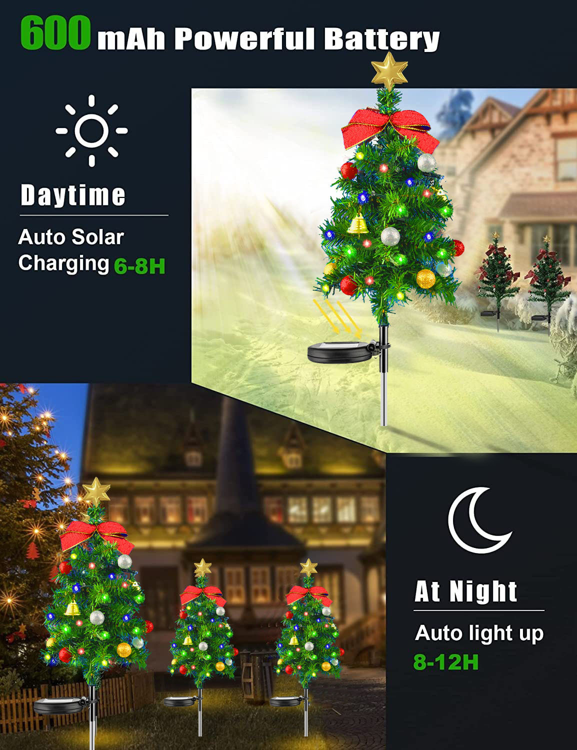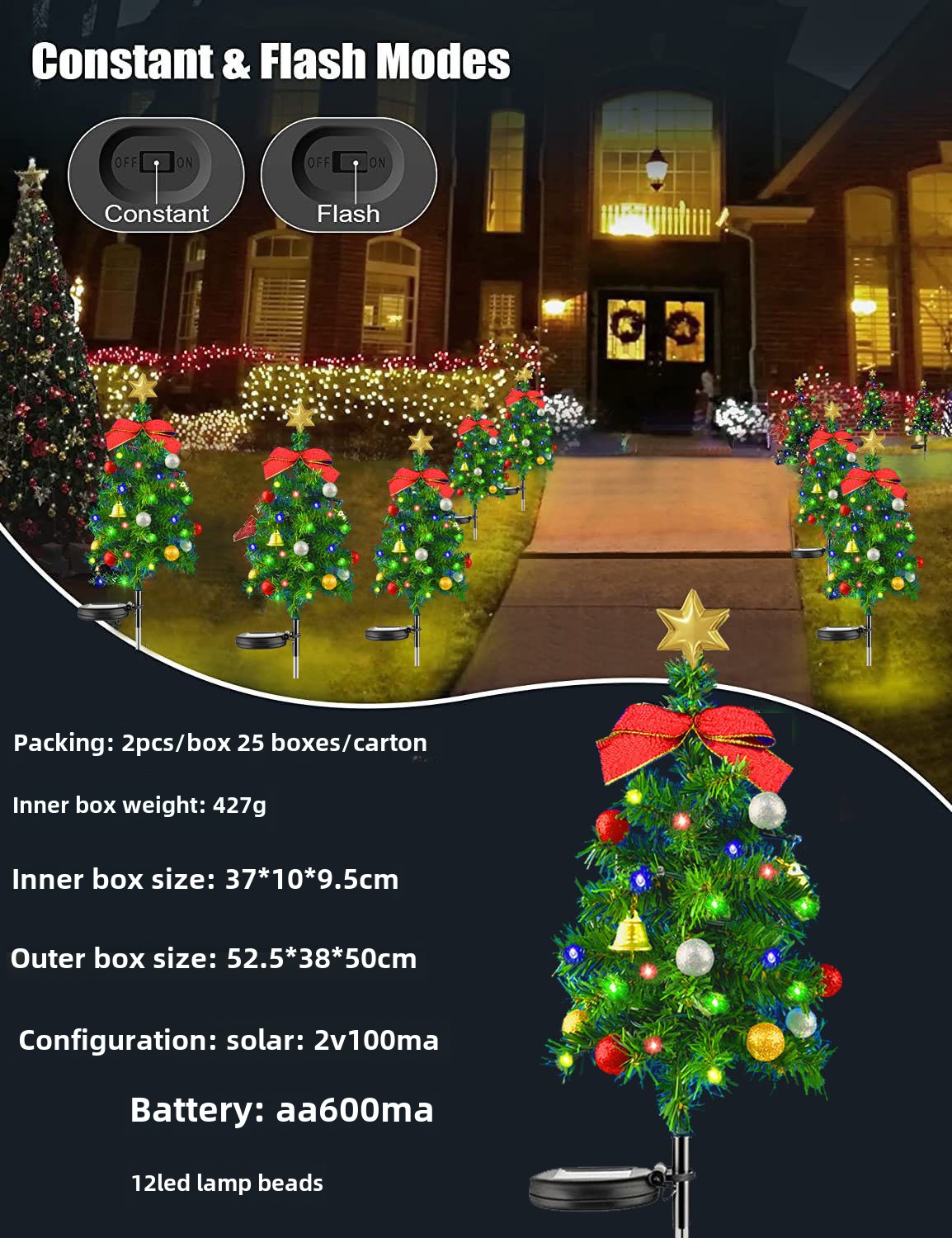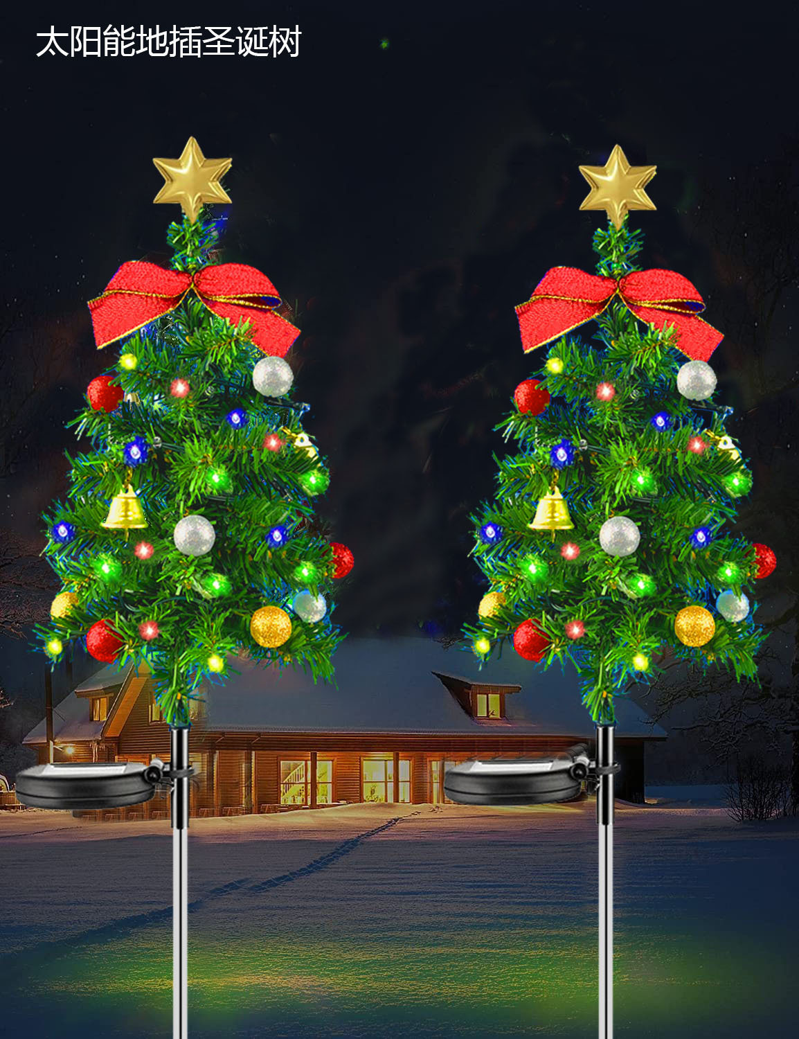 Outdoor solar powered Christmas tree ground mounted lights, festive atmosphere decoration, courtyard lawn garden landscape lights